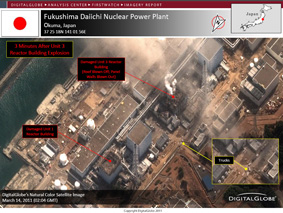 Digital Globe a mis en ligne un résumé des images de l’explosion du troisième réacteur (www.digitalglobe.com)