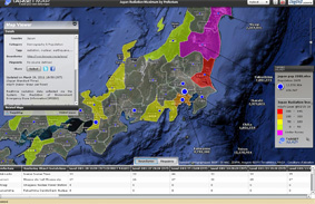 Cette avalanche d’images après crise n’a pas seulement permis de visualiser les conséquences du séisme et du tsunami. Elle a également servi à saisir de l’information (évaluation des dégâts, des populations et des bâtiments touchés par les services de cartographie rapide, travail d’Open Street Map sur les routes coupées, par exemple). D’autres cartes plus thématiques ont rapidement circulé sur Internet, qui exploitent des données officielles peu visibles sur les sites des institutions qui les produisent : niveau de radioactivité par préfecture (http://www.targetmap.com/viewer.asp...), nombre de disparus et lien avec les messages de recherche (www.sinsai.info, l’Ushaidi japonais sur fond OSM et le site d’OSM, (http://wiki.openstreetmap.org/wiki/... qui référence de nombreuses actions), localisation des ONG, des centres d’hébergements… Les sites qui rassemblent ces informations sont de tous types : médias (New York Times), universitaires/communautaires (http://gis.ats.ucla.edu/japan/, une collaboration entre CrisisCommons, GISCorps et UCLA), ou privés (pages ESRI par exemple). Vous avez même la possibilité de modéliser vous-même l’arrivée du nuage radioactif, en utilisant le site de l’ARL (Air Ressources Laboratory). C’est sans doute là que l’on atteint la limite de l’exercice car le site, qui sert à calculer des panaches de fumée en faisant appel au calculateur du gouvernement américain implique de bien connaître les paramètres de modélisation, ce qui est loin d’être à la portée du premier internaute venu (http://ready.arl.noaa.gov/hysplit-b...). Quelques animations sont également visibles, notamment sur les nombreuses secousses liées au séisme (http://www.japanquakemap.com/).